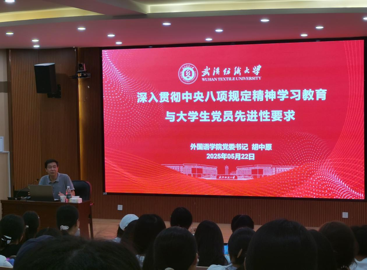 党课伊始,胡中原以中央八项规定 “三改进、两精简、一规范、一严格” 的核心内容为切入点,深入阐释其 “厉行节约、反对浪费” 的精神内核。通过剖析作风建设领域的典型正面案例与反面警示案例,系统论述 “作风建设永远在路上” 的深刻内涵,引导青年学子将中央八项规定精神内化为行为准则,在学习生活各环节中涵养清正品格。