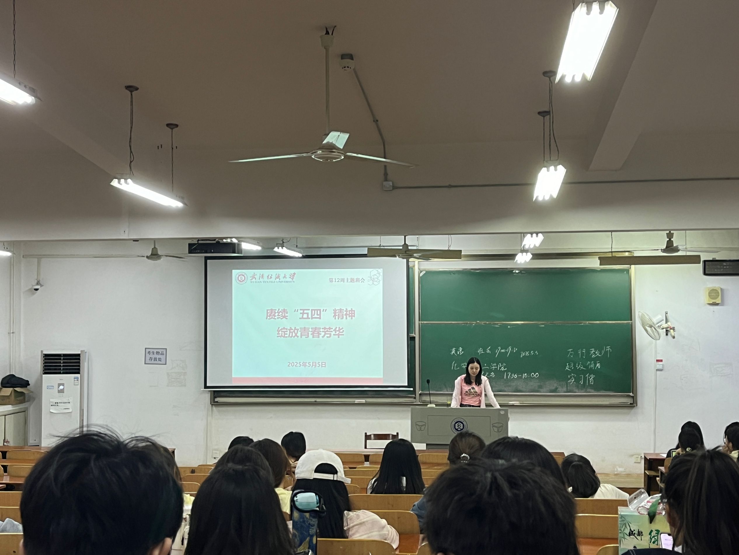 班会还介绍了众多当代青年榜样,如 “中国青年五四奖章” 入围者中的科技先锋杜灵杰、大国工匠冯攀龙等,他们在各自领域的卓越成就诠释了五四精神的时代价值。同时,武汉纺织大学的优秀青年师生代表也成为大家学习的典范。学校纺织新材料与先进加工全国重点实验室研究团队荣获 2025 年 “湖北青年五四奖章集体”,该团队青年占比 91.4%,在纺织新材料科技创新领域成果斐然,参与多项国家重大项目,助力航天工程等关键领域发展。此外,学校 2024 年度 “青年五四奖章” 获得者刘学琴、张晓芳等教师,以及 “青春力量・感动纺大”2024 年度十佳榜样人物韩秀、曹子翔等学生,他们在科研创新、教书育人、学科竞赛、社会实践和创新创业等方面表现突出,展现出纺大教师与学生的奋斗风采。