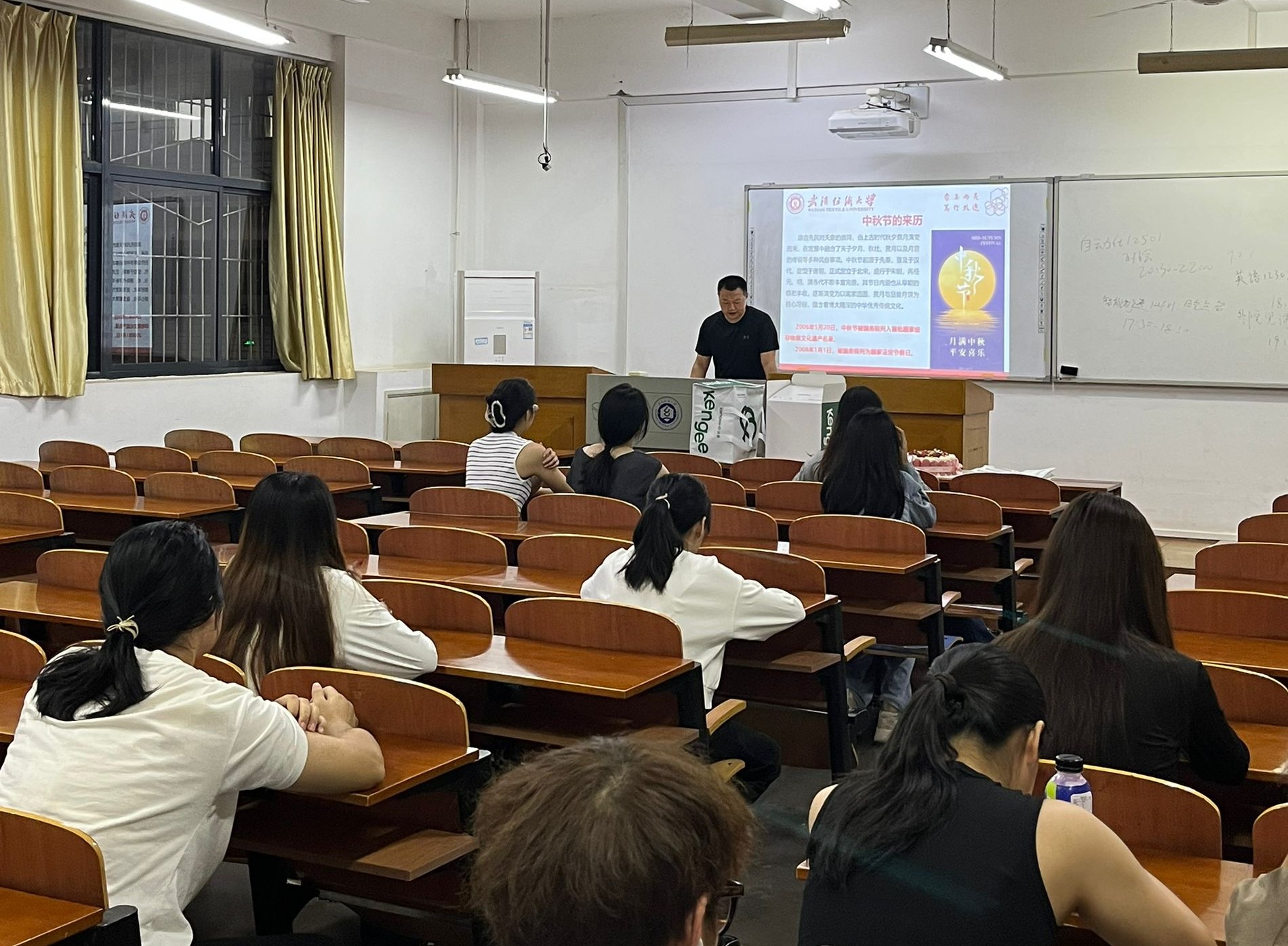 班会上,班主任首先带领同学们回顾了新中国成立76年来的光辉历程,讲述了国庆的由来与重要意义,激励同学们珍惜来之不易的发展成果,弘扬奋斗精神,为实现中华民族伟大复兴贡献力量。随后,班主任介绍了中秋节的传统文化内涵,包括其历史渊源、经典传说与民俗习俗,增强了同学们对中华优秀传统文化的认同与自豪感。