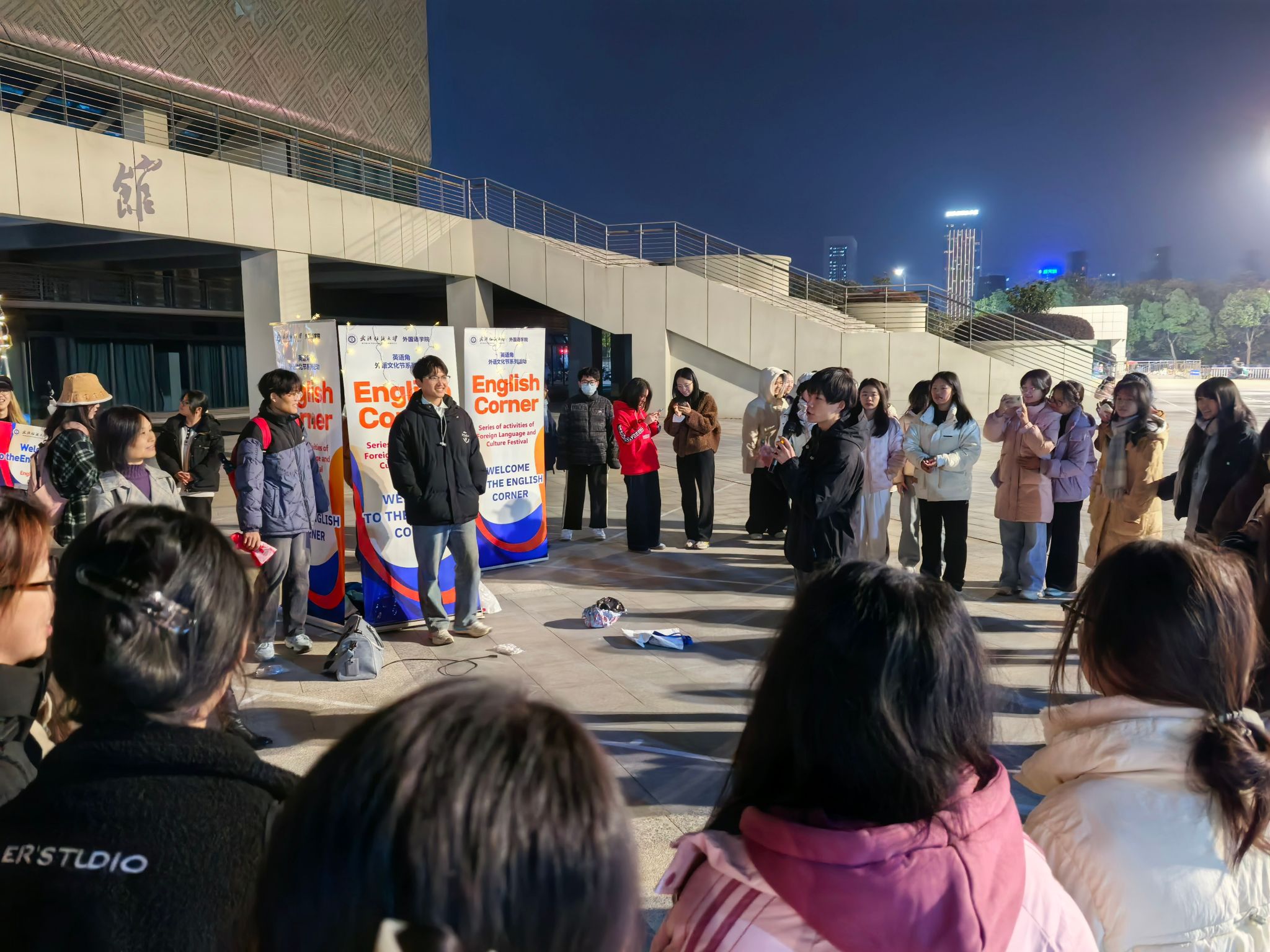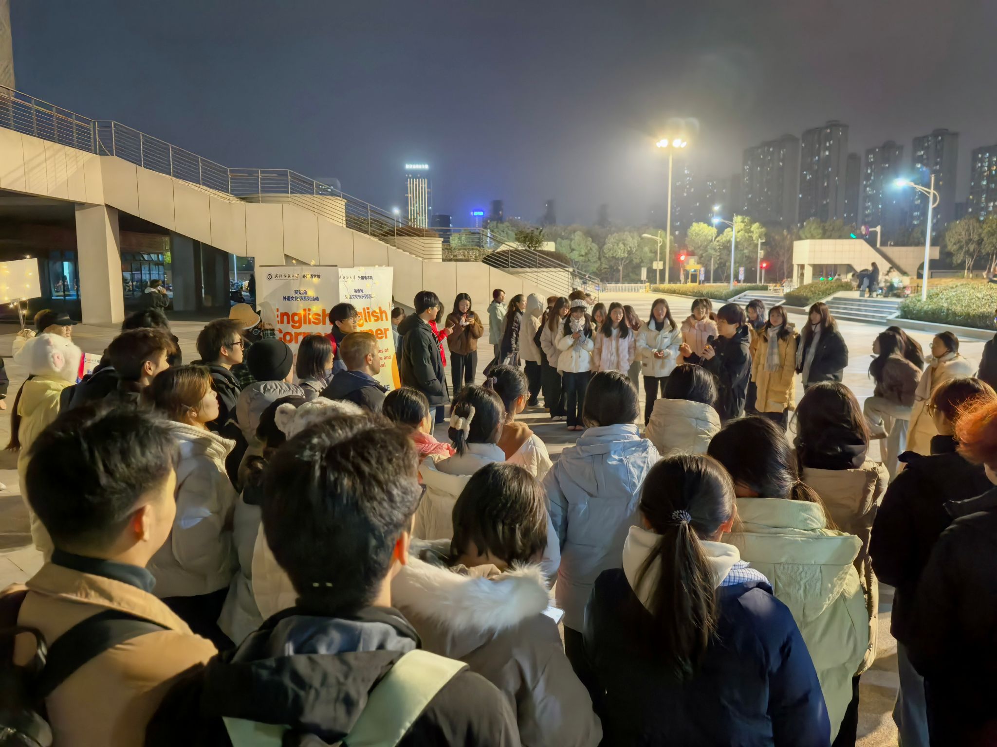 在阳光校区与南湖校区成功同步举办校园英语角活动。本次活动吸引了两个校区共计约400名师生踊跃参与,学院领导班子成员、专业教师及外籍教师共同到场,与同学们进行面对面交流,活动现场气氛热烈,学术与文化交流氛围浓厚。