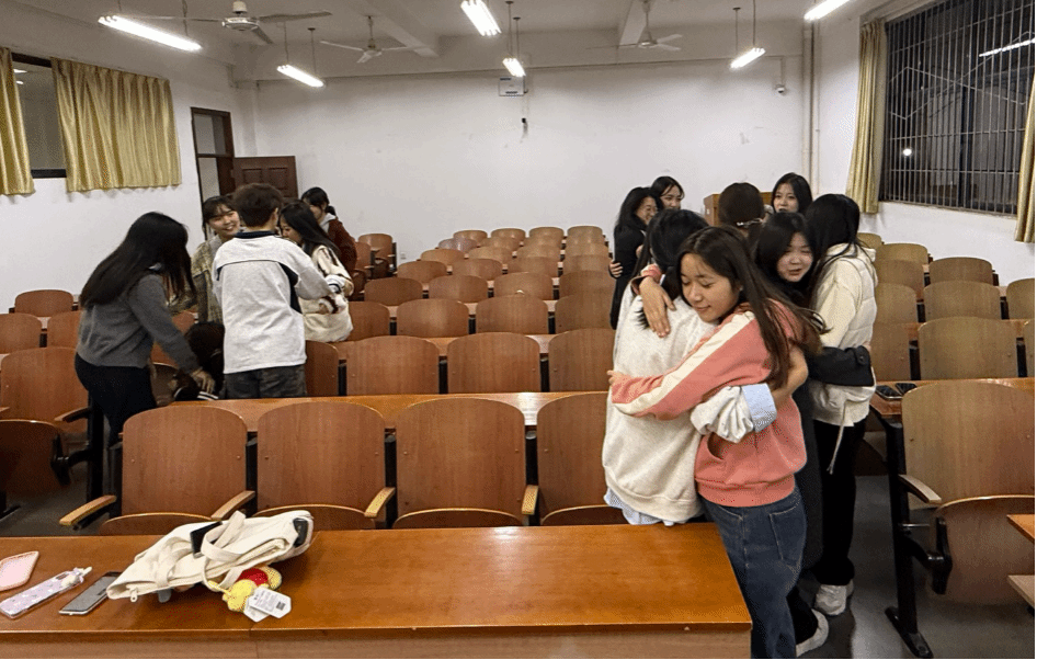 本次活动精心设计了一系列沉浸式、互动性强的心理体验环节。“春日心语”破冰游戏以春日元素为切入点,引导同学们营造轻松愉悦的活动氛围。“情绪温度计”环节通过彩色卡片可视化情绪状态,鼓励同学们围绕专业学习、跨文化交流、人际交往等共性困惑敞开心扉,在真诚的倾诉与倾听中收获理解与共鸣。“信任盲行”体验让同学们在角色互换中深刻感悟信任与沟通的价值;“未来明信片”环节则引导大家书写学期期许,留存成长动力。活动最后,正念呼吸放松训练带领同学们平复心绪、专注当下,为本次团辅画上圆满句号。参与活动的同学们纷纷表示,本次团辅搭建了一个安全温暖的心灵交流平台,不仅有效释放了学生积压的情绪压力,更增进了同学间的信任与默契。