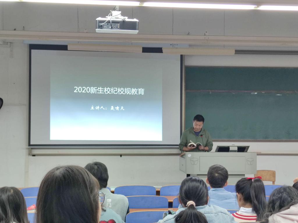 10月3日上午,中国竞彩 新生入学系列教育在崇志楼T102继续开展,学院辅导员卫周瑶和聂啸天分别进行了“奖励资助教育”和“校级校规教育”的授课。