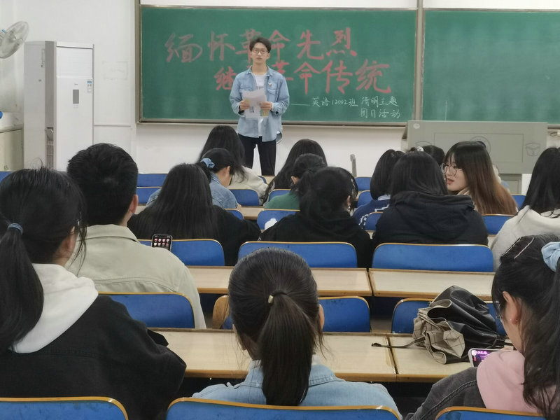 “将井冈永远传唱,坚定信念就再不怕风浪,且用青春奏出时代的声响,明天会有新的模样”。同学们在活动开始时一同观看红色经典MV,学唱《青春,就在井冈》,用青春的旋律表达年轻一代的坚定信念。随后,在班委的带领下,同学们集体诵读了《囚歌》等经典革命诗歌,大家纷纷走上讲台动情讲述杨靖宇、胡修道、王伟等先烈的故事,最后,每人在黑板上写下一句红色格言,用这种方式表达对历史的铭记,对先烈的纪念。