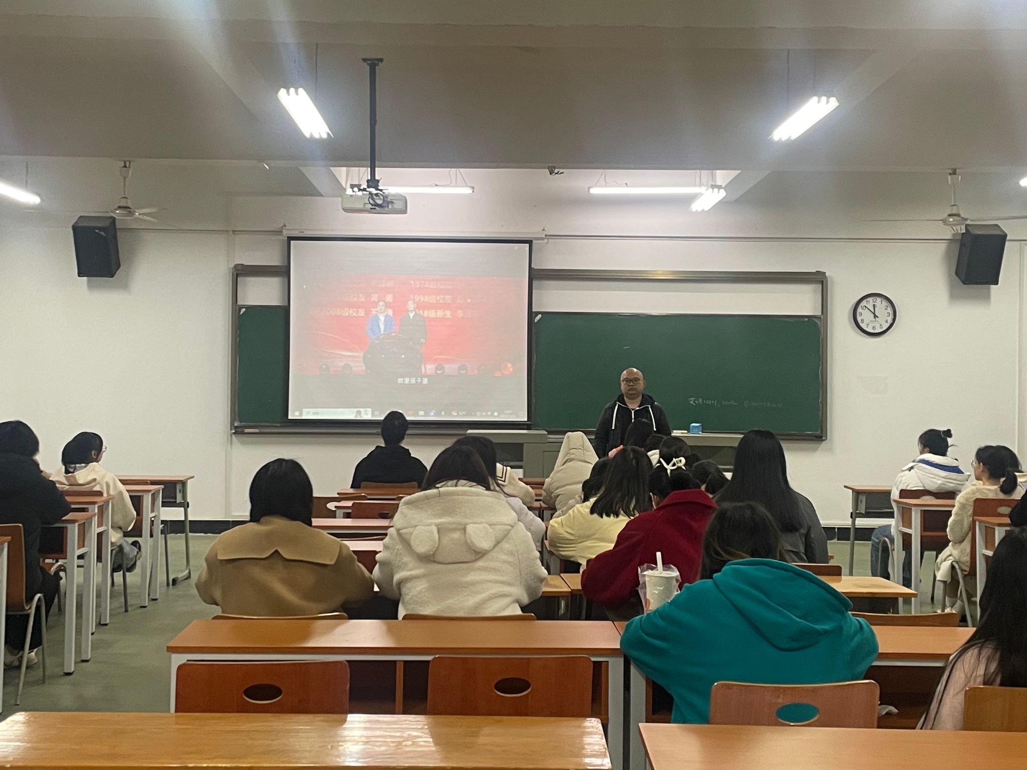 会上,班主任首先组织学生集中观看《爱 在一起》宣传片,加强校史校情教育,并指出校友是学校办学质量、办学水平、社会声誉和社会形象的重要体现,是学校联系社会的重要桥梁和纽带,也是学校事业发展的重要支撑和依靠力量。校友在各自岗位上取得的成绩和做出的贡献,是对学校教育教学质量的最好反馈。随后班主任介绍武汉纺织大学第三届校友代表大会暨校友企业家联谊大会举行情况,并介绍我校部分优秀校友代表简介,从而鼓励同学们以优秀校友为榜样,厚植爱校荣校情怀。