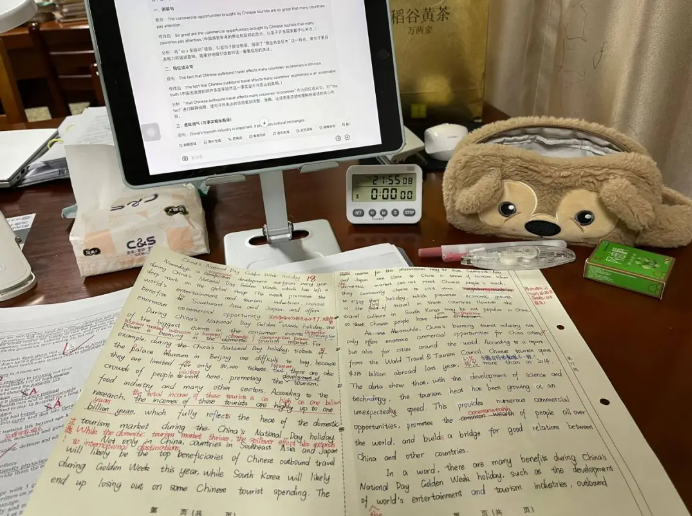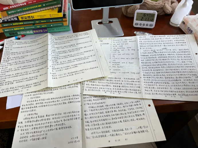 六月暑气渐浓时,疲惫突然涌上来了。看着永远背不完的词条、做不完的真题,第一次怀疑:这样日复一日,真的能考上吗?但合上书想想,都已经走了三个月,难道要现在回头吗?咬咬牙,继续在单词本上画下新的重点。暑假的蝉声喧嚣,我选择与留校的寂静为伴。学院的打卡制度像温柔的推手,让散漫的时光有了清晰的刻度。当然,也有撑不住的时候 —— 某个蝉鸣刺耳的午后,看着密密麻麻的笔记突然红了眼眶。于是给自己放了一周的假,去看夏日的云,吹傍晚的风,回来后发现,休息后的征程,脚步竟更轻快了些。