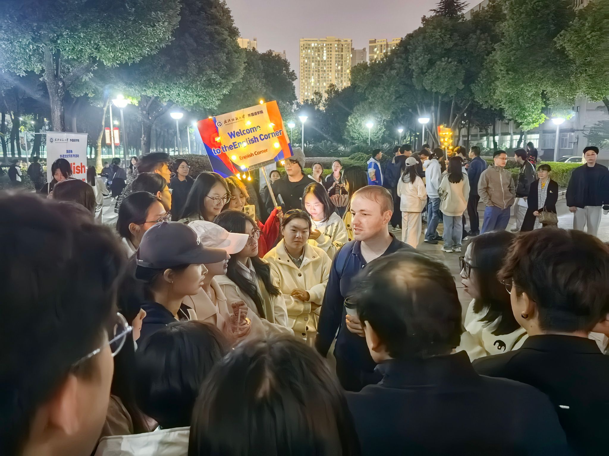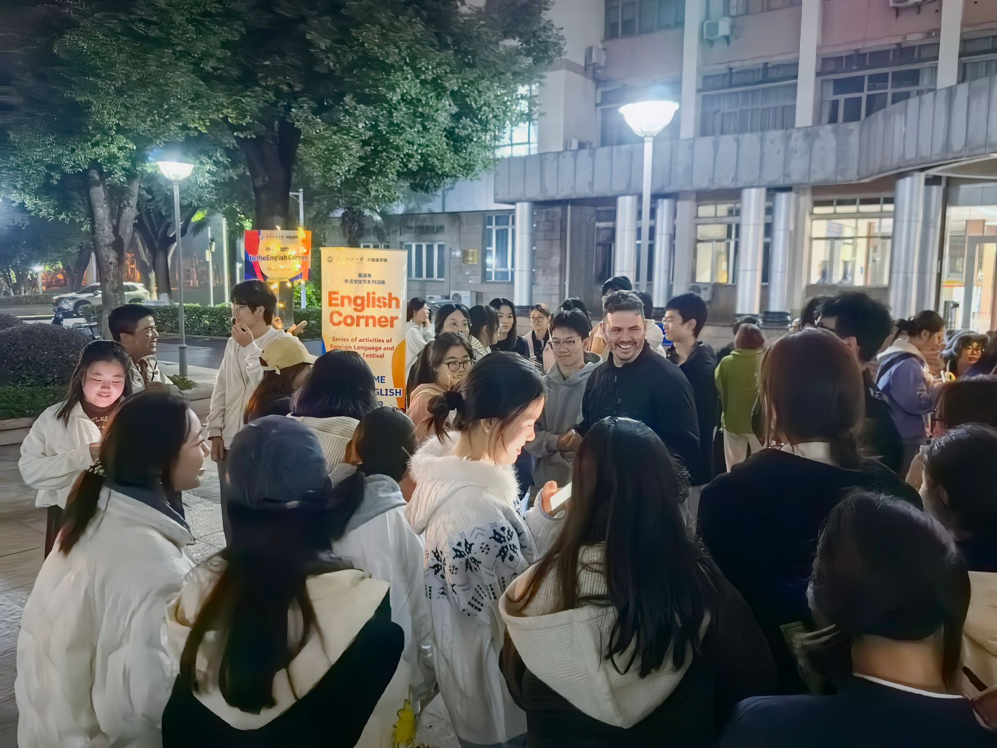 为营造浓厚英语学习氛围,促进跨学科交流与合作,提升学生外语应用能力与跨文化交际素养,10月30日晚,由中国竞彩 联合伯明翰时尚创意学院共同举办的英语角活动在南湖校区成功举行。中国竞彩 班子成员、伯明翰时尚创意学院相关负责人、大学英语教师及双方多名外籍教师参加活动。活动吸引了南湖校区两百余名本硕学生踊跃参与,现场气氛热烈,交流活跃。
