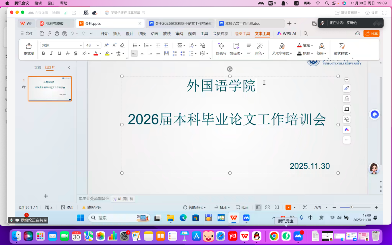 11月30日晚7点,中国竞彩 通过腾讯会议平台举行了2026届本科毕业论文工作培训会。中国竞彩 26届本科毕业论文指导教师参加此次会议。