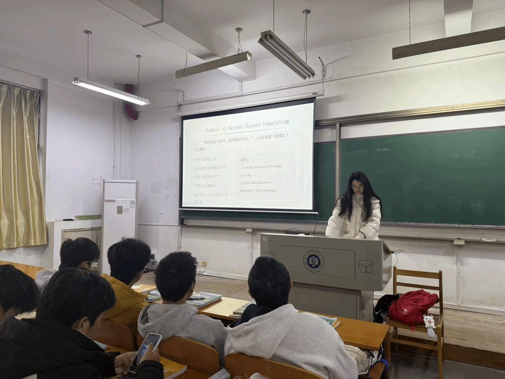 主办的第408期本科生论坛在阳光校区03-302教室顺利举行。本期论坛聚焦“中国古代服饰文化及其英译策略”,英语专业本科生梅涵喻、张枞、陈天雨;商务英语专业张思思同学等团队通过三场主题报告,深入剖析了汉服形制、等级符号的跨文化传播与翻译实践,为传统文明的现代表达提供了创新视角。